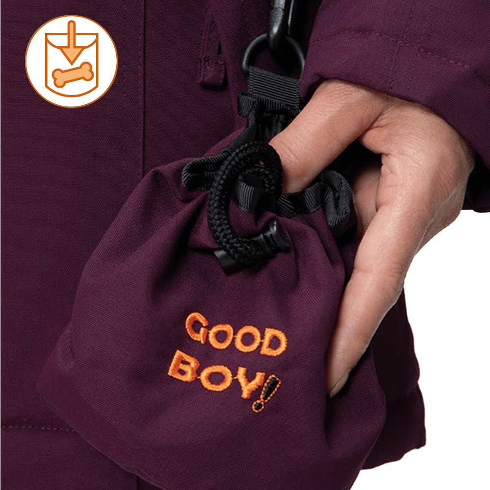 2 Leckerlibeutel: 1 x am Karabiner (TIKA) und 1x mit Klett (FELIX) zum Fixieren an verschiedenen Positionen!