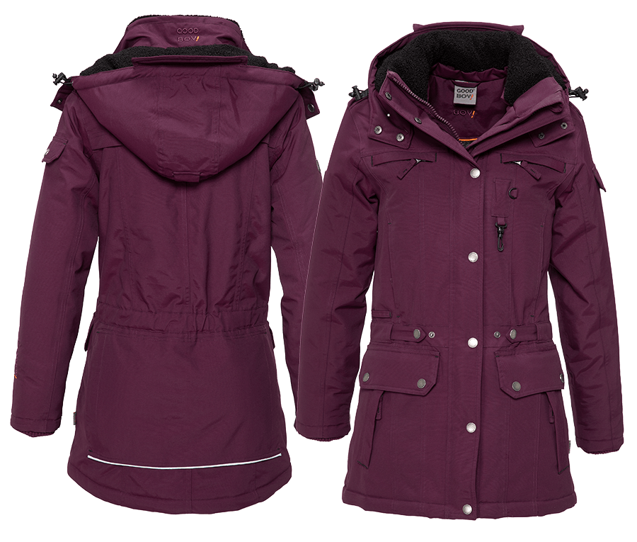 "Hallo, habe heute die neue ""Jacky"" gekommen. Super die Jacke! eine tolle Farbe in aubergine, die Größe paßt genau wie von euch angegeben. Bin sehr zufrieden mit den Jacken von Goodboy - eine Winterjacke habe ich auch von euch. Weiter so!"