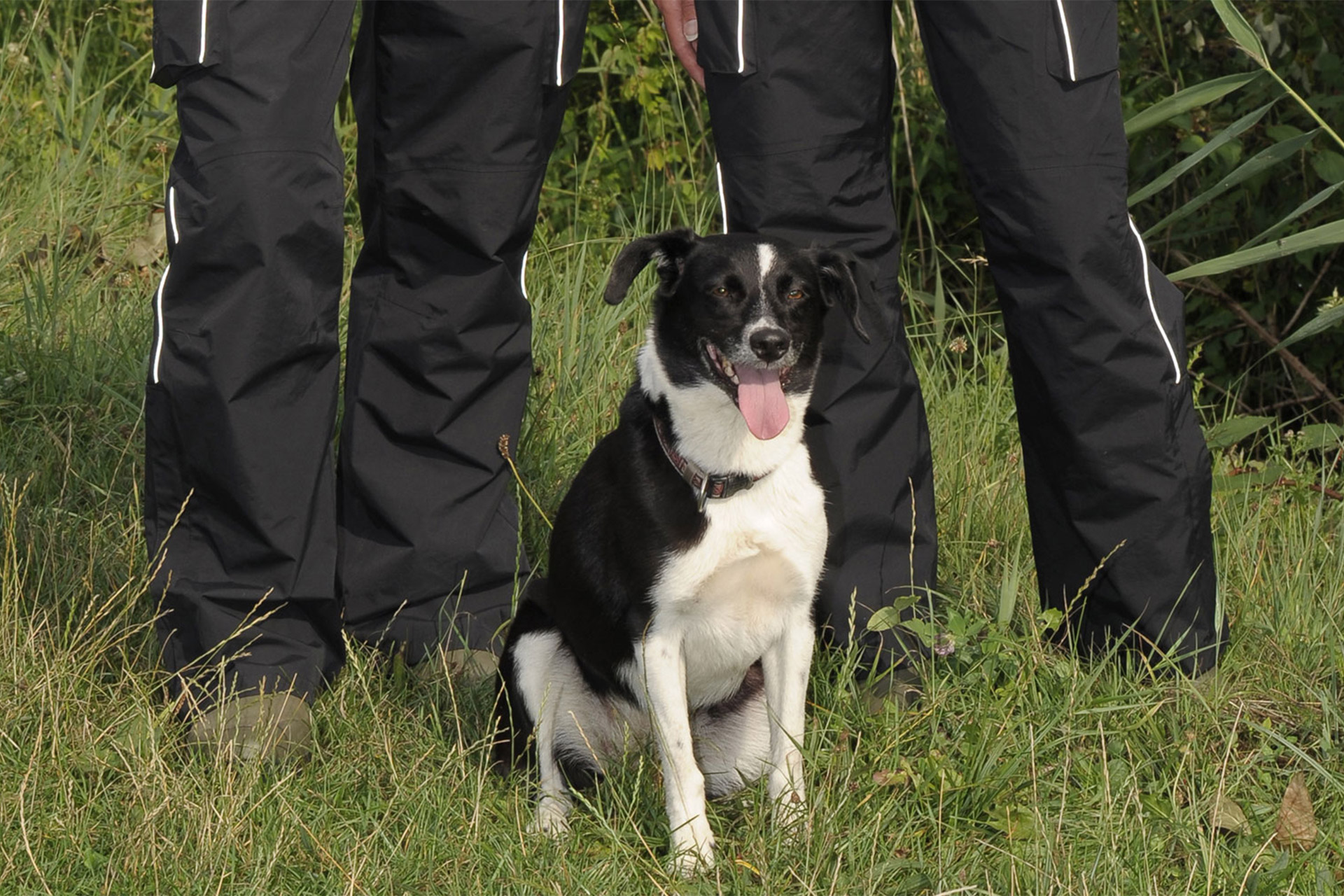 Wasserdicht (verschweißte Nähte, 8.000 mm), atmungsaktiv, winddicht. Natürlich mit dem Leckerlibeutel und vielen Taschen. 1 LeckerlibeutelGesäßtaschen mit Reißverschlusszwei KargotaschenGürtelschlaufenreflektierende BänderBeinabschluss in der Weite stufenlos verstellbar Qualität: