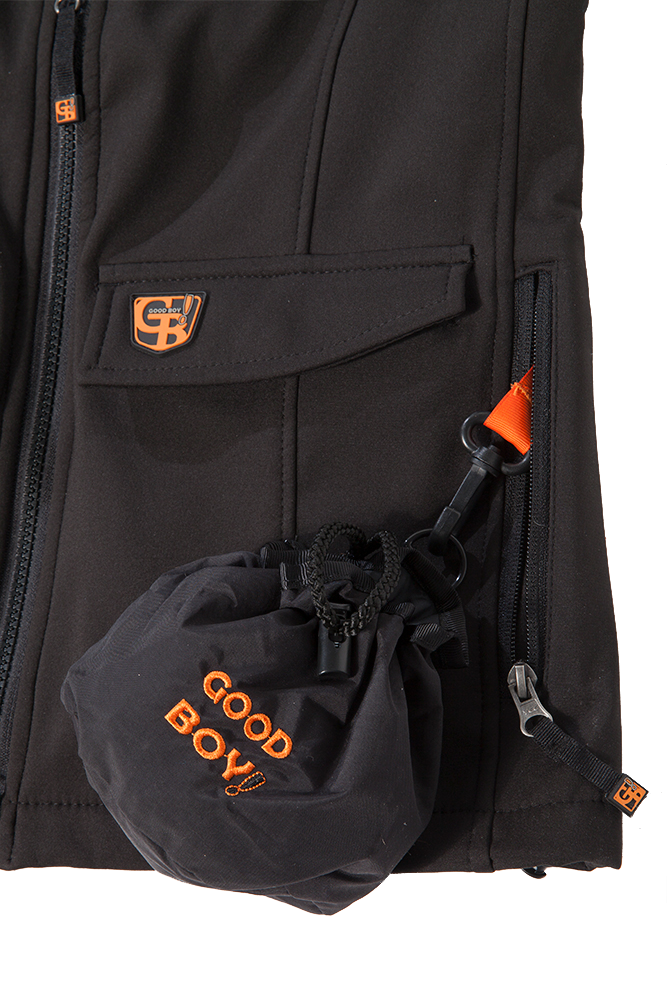 Eine sehr bequeme und sportliche Softshell-Weste, innen weich mit Fleece gefüttert und mit den GOOD BOY! Funktionen für Euer Training und den Gassigang!