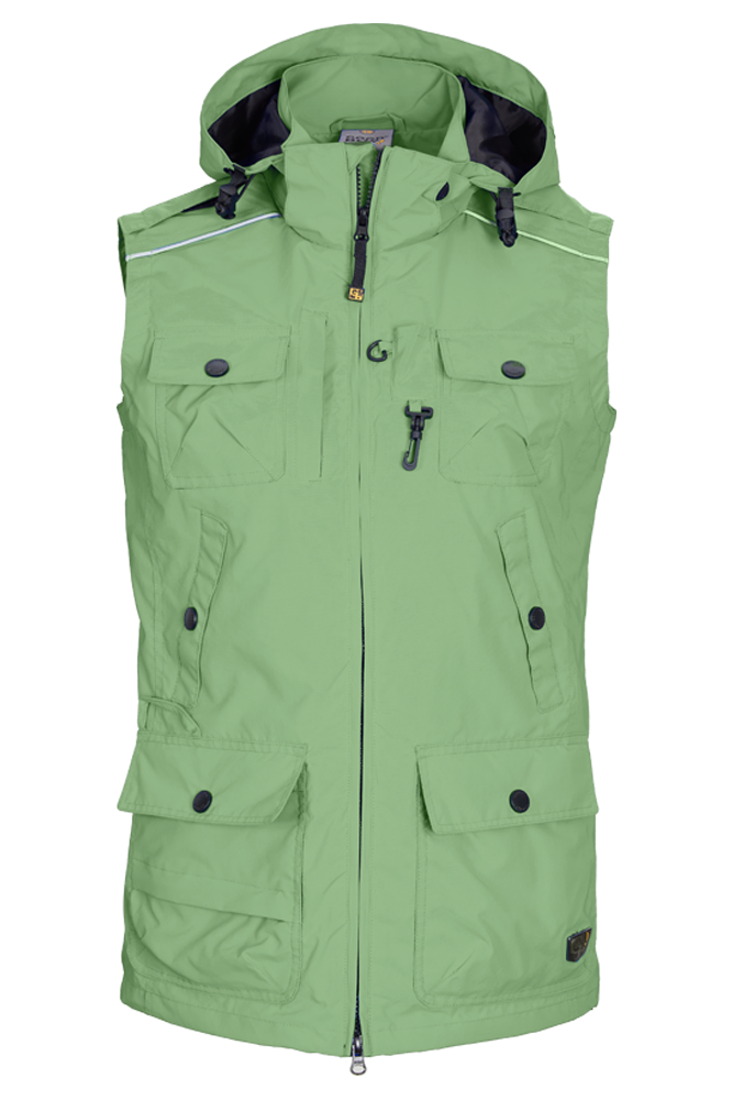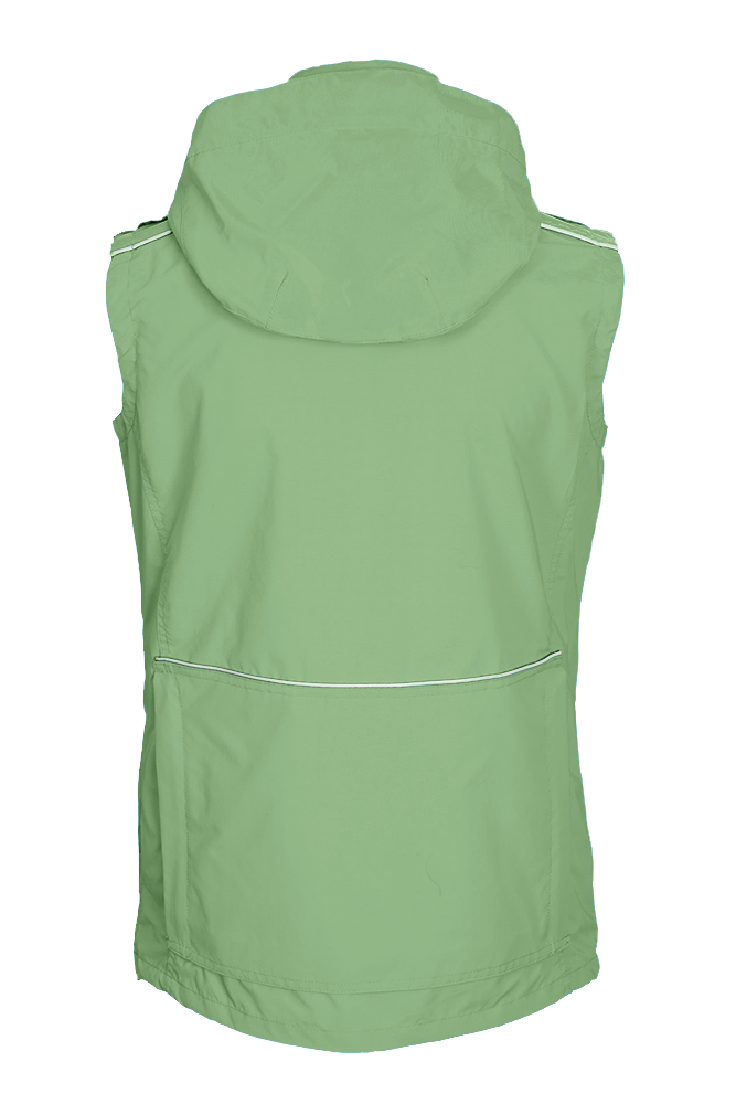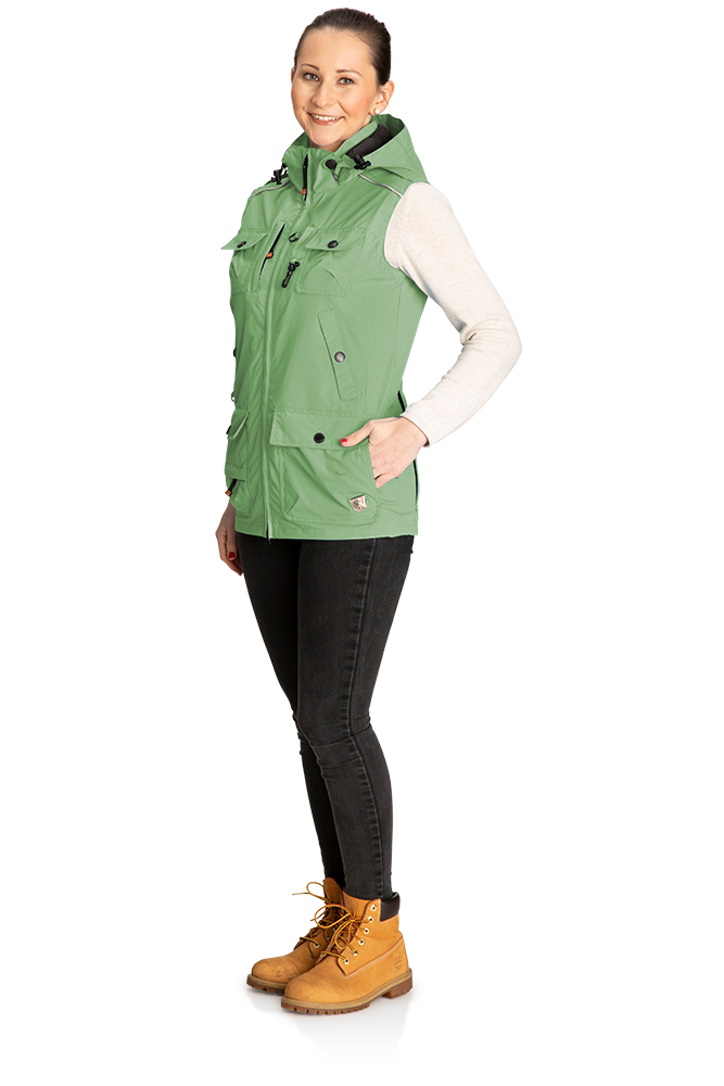 Sportliche bequeme und leichte Damenweste mit extra vielen Funktionen. Mit abtrennbarer Kapuze, wasserabweisend, atmungsaktiv und winddicht für den Übergang und Sommer.