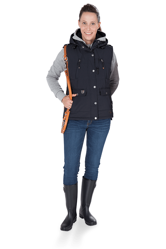 Sportliche bequeme und wärmende Damenweste mit extra vielen Funktionen. Mit abtrennbarer Kapuze, wasserabweisend, atmungsaktiv und winddicht für den Übergang und Winter.