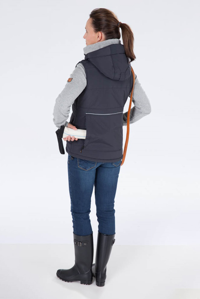 Eine leichte aber wärmende Damenweste mit extra vielen Taschen und Kapuze.